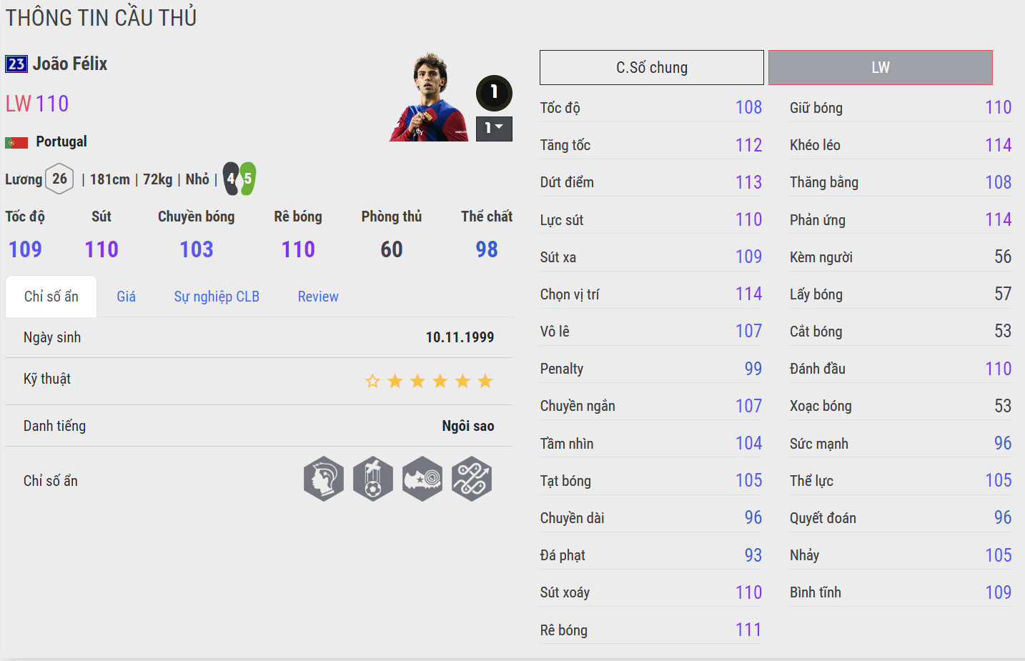Mở đầu danh sách này, không thể không nhắc đến João Félix mùa 23UCL. Kinh nghiệm của tôi khi sử dụng Felix ở các mức thẻ +5 và +7 cho thấy đây là một hộ công cực kỳ tài hoa và hiệu quả.
