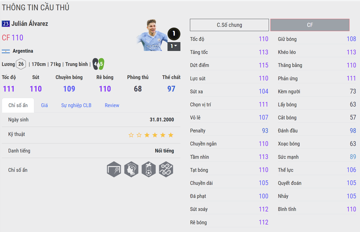 - Dứt điểm toàn diện: Đây là điểm ăn tiền nhất. Alvarez sút tốt bằng cả hai chân (4/5), hiệu quả với mọi loại sút: sút D căng, sút DD hiểm hóc, ZD kỹ thuật và cả những cú sút xa uy lực. Khả năng dứt điểm này gần như hoàn hảo khi lên thẻ +7.