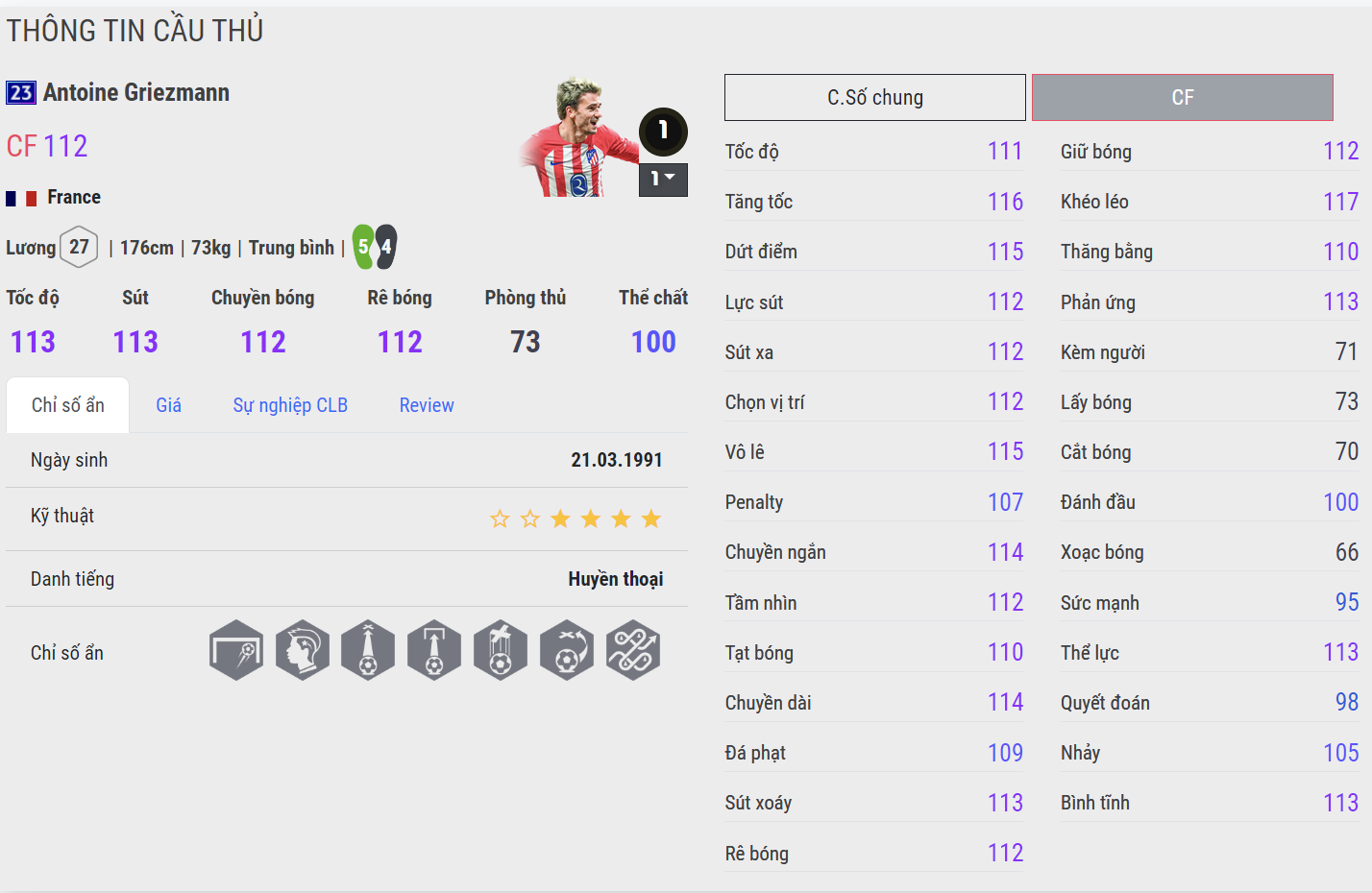 - Không chiến ổn định: Dù không cao, khả năng chọn vị trí và đánh đầu của Griezmann rất tốt, thường xuyên chiến thắng trong các pha tranh chấp trên không hoặc ghi bàn từ phạt góc. Tôi đã chứng kiến điều này nhiều lần với thẻ +7.