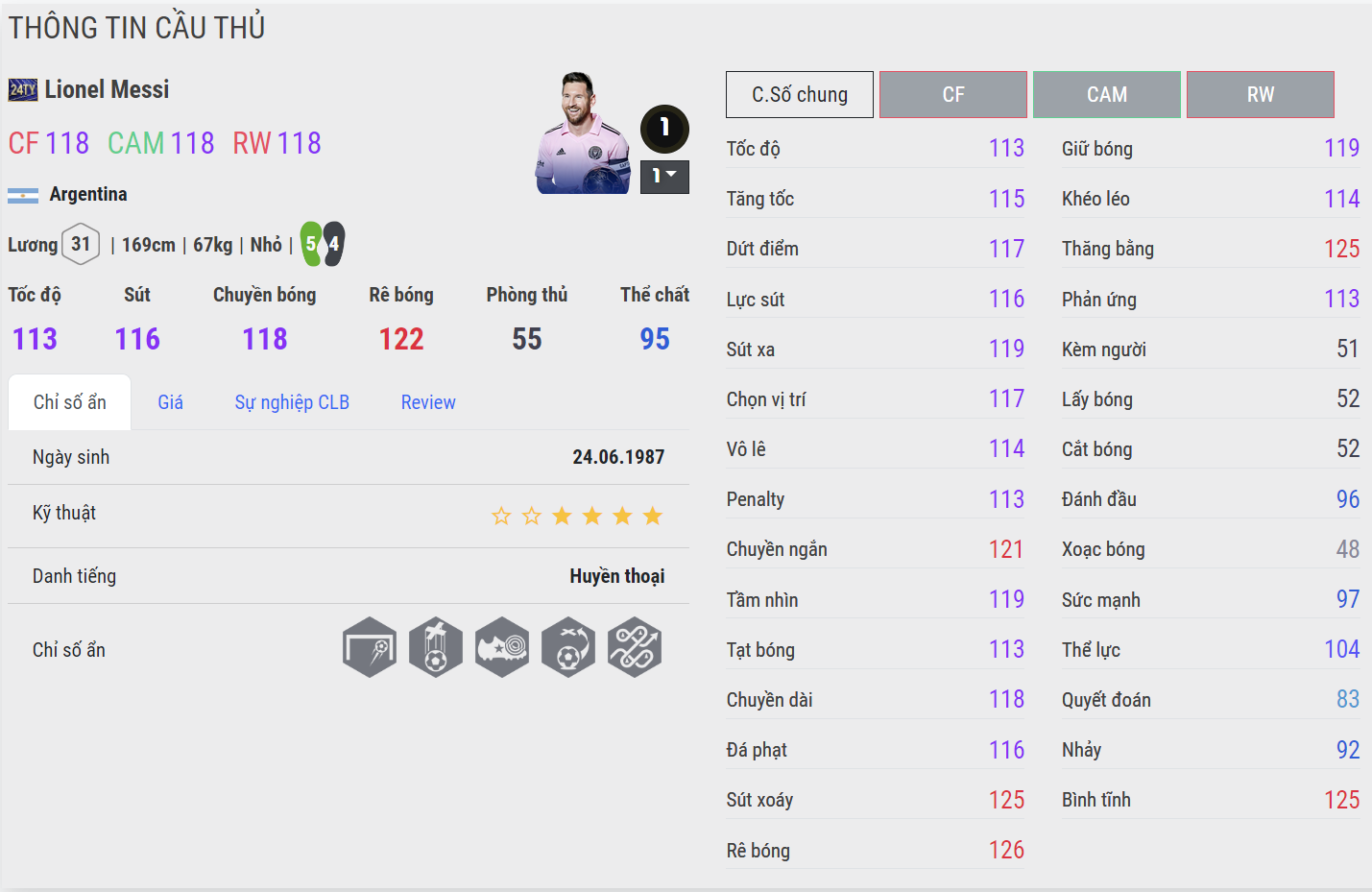 Để Messi 24TOTY tỏa sáng ở vị trí CAM, cần một hệ thống chiến thuật hỗ trợ tốt, bảo vệ anh khỏi những pha tranh chấp quá quyết liệt. Nhưng nếu làm được điều đó, bạn sẽ sở hữu một “nhạc trưởng” có khả năng thay đổi cục diện trận đấu bằng những khoảnh khắc thiên tài.