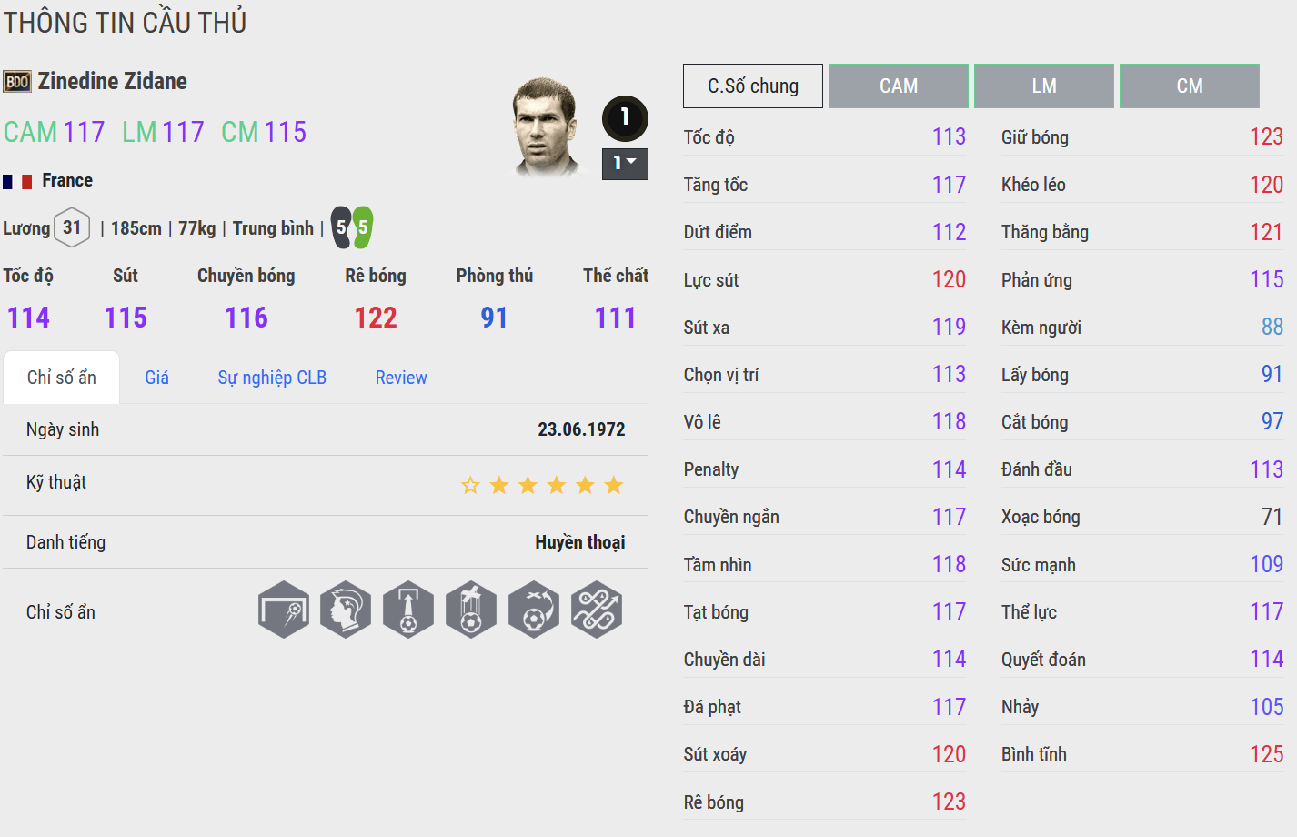 - Tính ổn định: Zidane duy trì phong độ cao trong suốt trận đấu, ít mắc sai lầm và phù hợp với mọi sơ đồ chiến thuật.